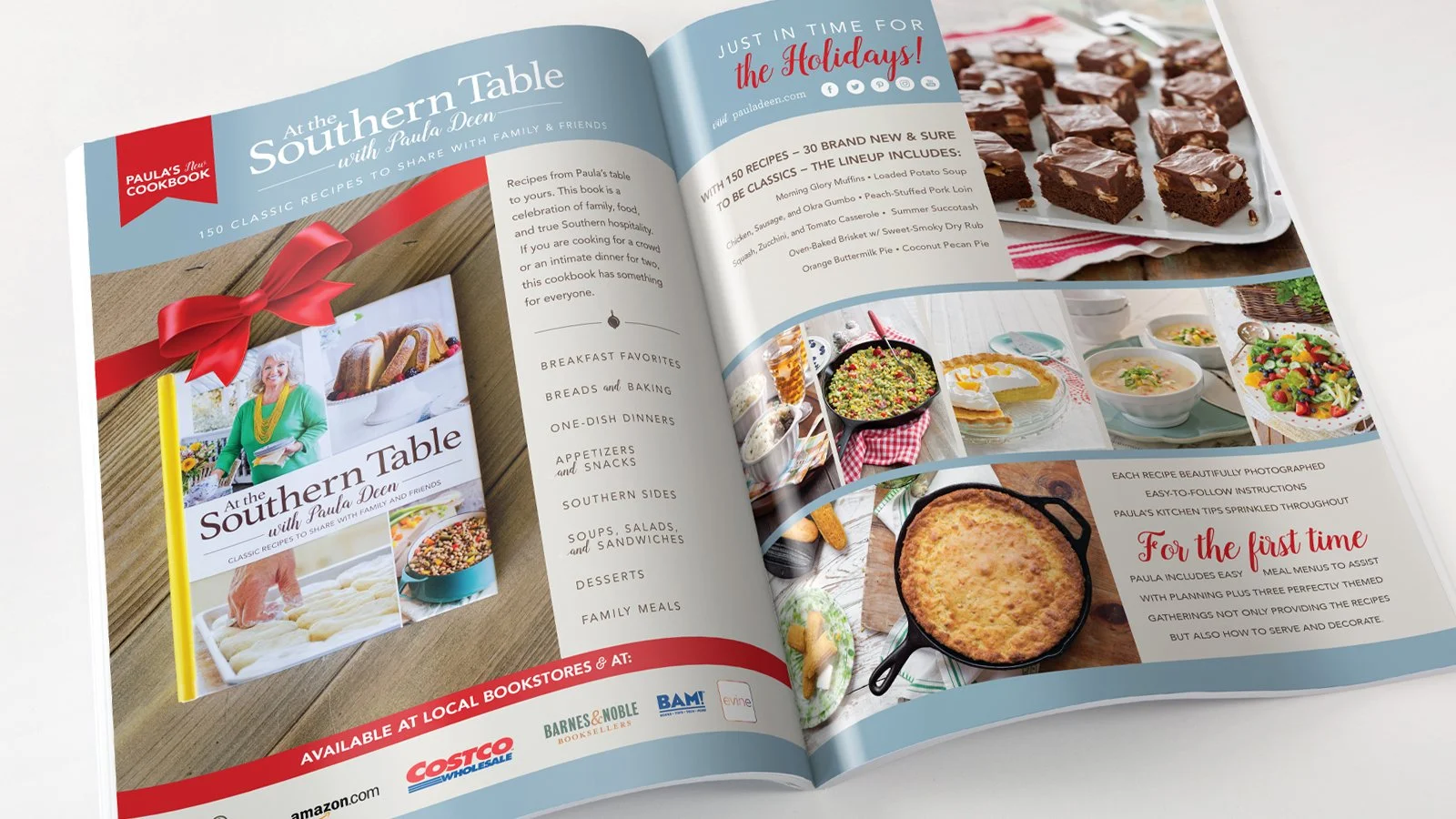 I created this print ad to promote the release of Paula Deen’s cookbook, At the Southern Table. According to GfK MRI’s Consumer Ad Recall Study in March 2018, this ad received the highest noted ad score (the percentage of readers of an issue who recalled noticing the advertisement) in the epicurean category. It scored 90%, beating out ads from major brands, like Kohl’s, Dom Pérignon, KitchenAid, and more.